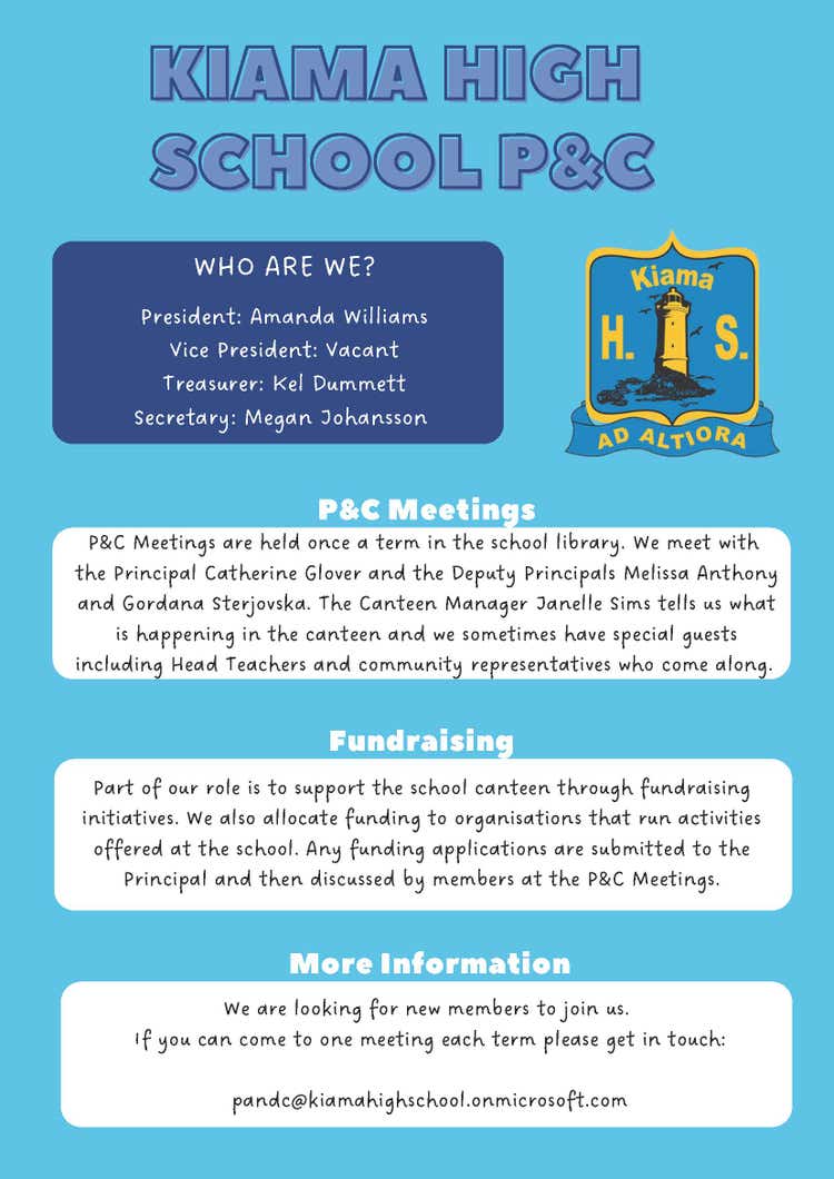 To join our P&C, please email: pandckiamahighschool.onmicrosoft.com.