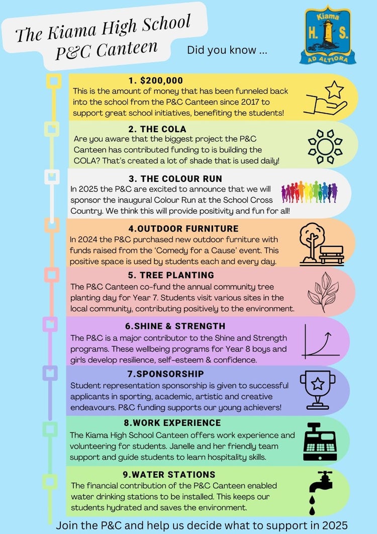Our next P&C meeting will be held in Term 4, Week 5 - Monday 10 November 2025 at 6.30pm in the Office Interview Room. All welcome!